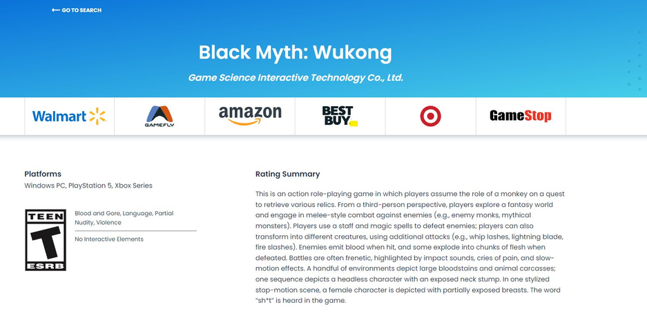 Теперь игроки обратили внимание на «сигнал». Как сообщают, организация Entertainment Software Rating Board (ESRB) присвоила Black Myth Wukong возрастной рейтинг в США не только для ПК и PlayStation 5, но и Xbox Series X|S — теперь пользователи ожидают «скорый» релиз на консоли Microsoft.