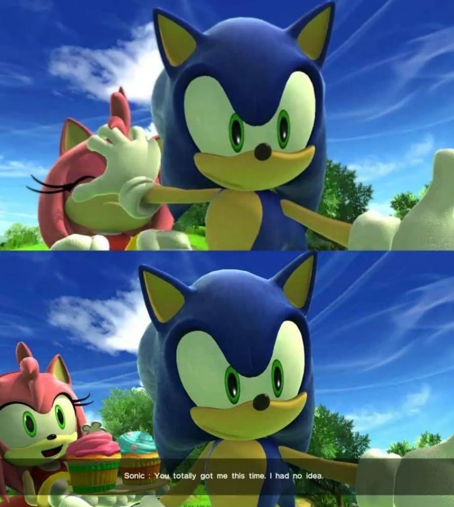 Одно из них касается обмена репликами между Соником и Эми. В оригинале, когда Соник попадает на сюрприз-вечеринку в честь своего дня рождения, он не слишком любезно обращается с Эми, закрывая ей лицо рукой. В новой версии Соник этого не делает, а Эми можно увидеть с парой кексов.
