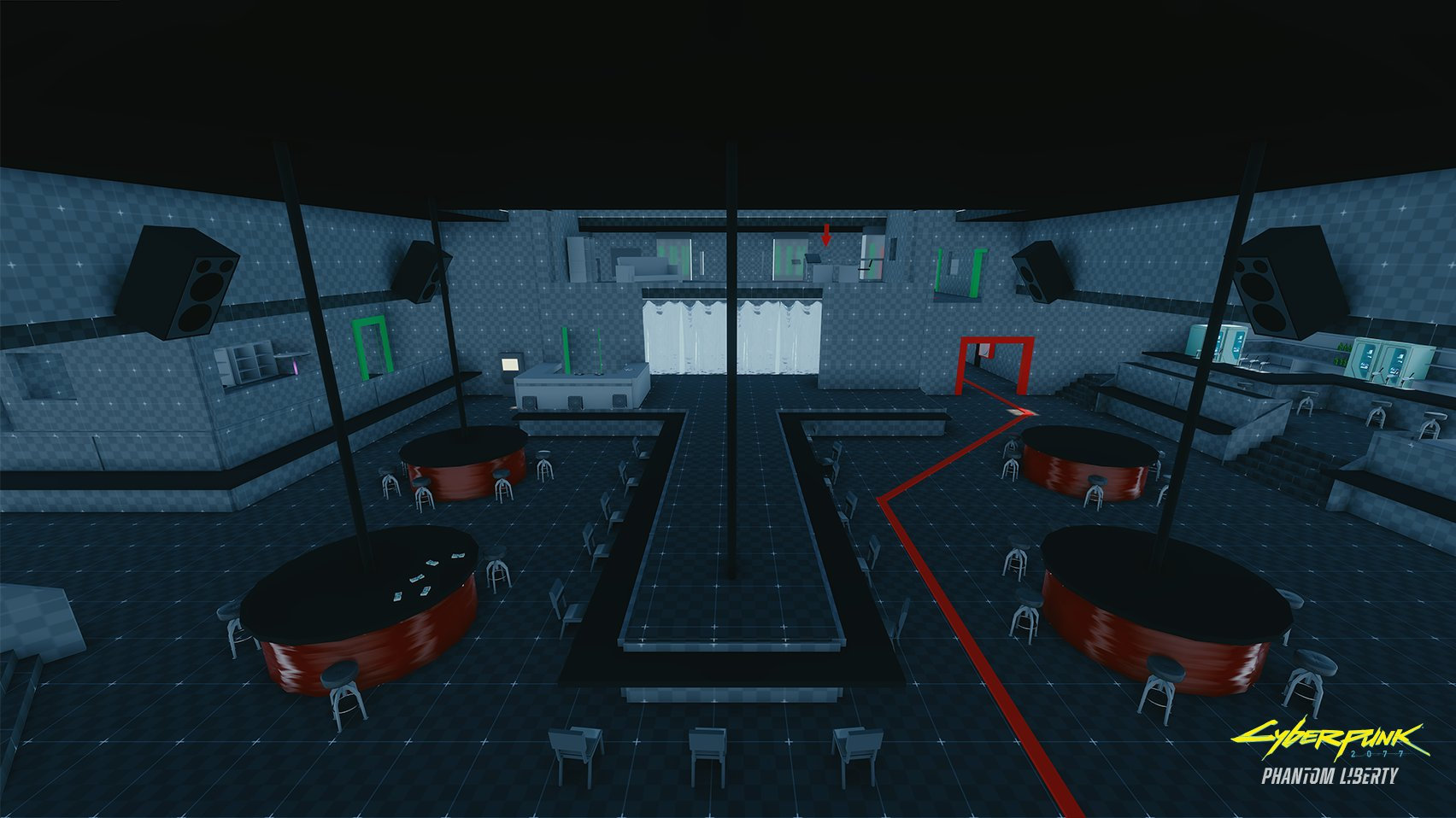 «Черновой вариант был создан к середине проекта. Я хотел создать место, где игроки могли бы немного передохнуть и спокойно осмотреться, перед чем переключиться на более стандартное задание на скрытность. Я старался сохранить дух "стелс-игр", при этом передав атмосферу и стиль Cyberpunk 2077».