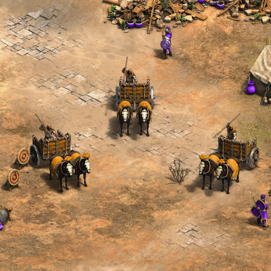 - Боевая колесница (War Chariot): должны хорошо давить пехоту (против неё есть бонус), «Боевая колесница сметает любого, кто окажется достаточно глуп, чтобы встать у неё на пути».