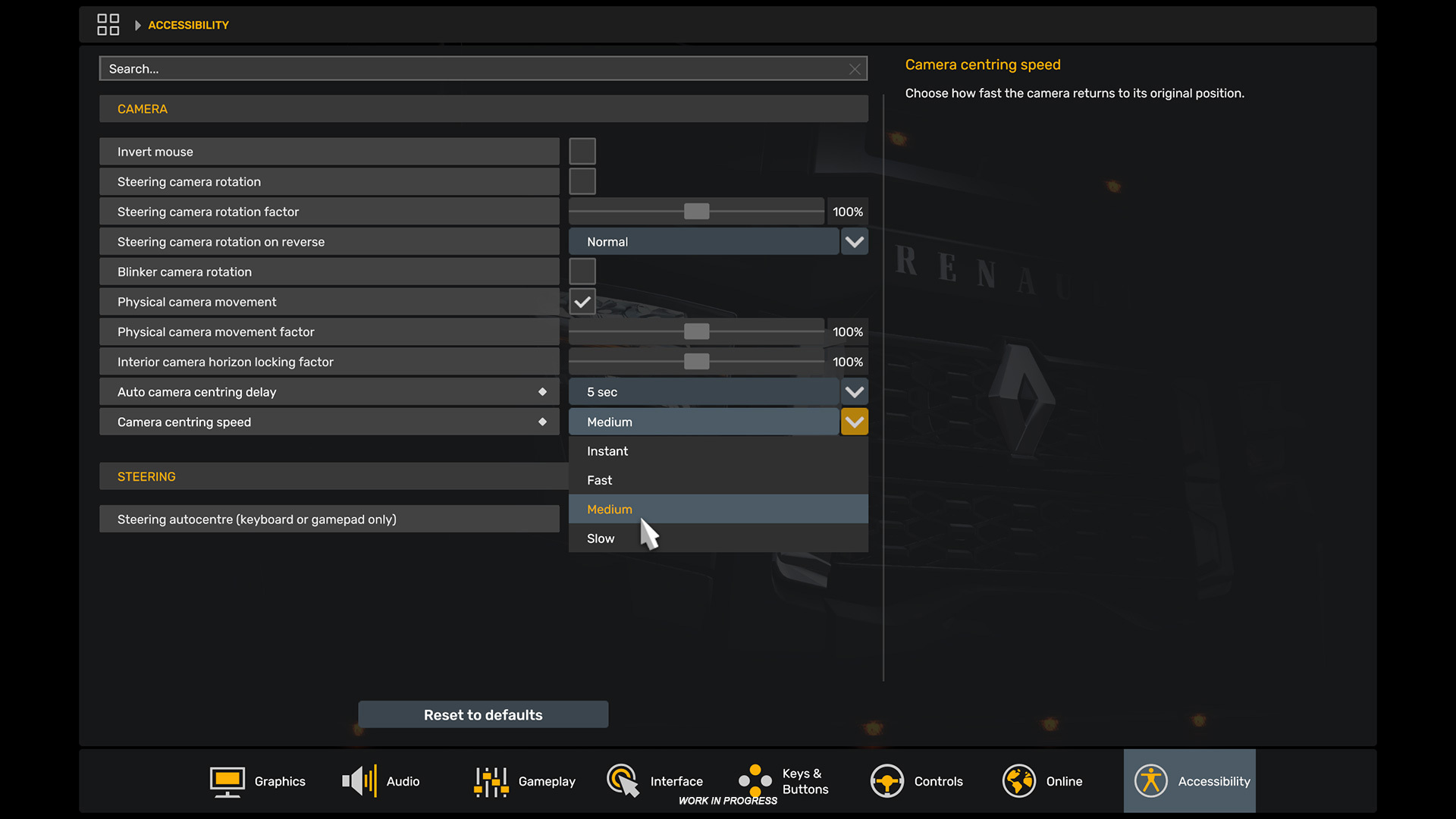 Новая функция — будет автоматически возвращать камеру в центральное положение после ее перемещения: «При активации игроком или при движении вперёд функция плавного центрирования становится заметной, поскольку она плавно переводит камеру в центральное положение».