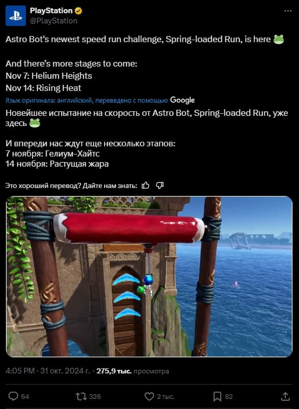 Astro Bot вышла в сентябре 2024 года, но Team Asobi продолжает развивать игру. Согласно анонсу, еженедельно добавляются новые бесплатные уровни с испытаниями на скорость.