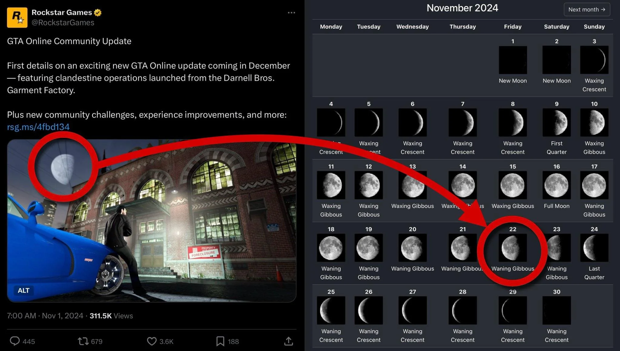 В прошлом году по фазе Луны вычислили «релизное окно» трейлера, в ноябре 2024 года попытались повторить этот метод.