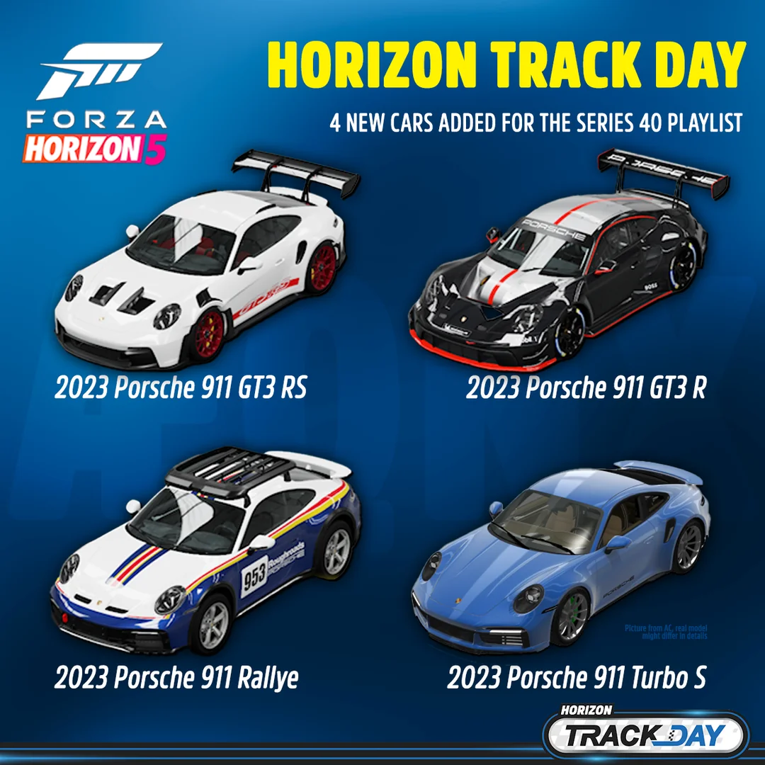 Расписание автомобилей серии Forza Horizon 5 Track Day (Porsche):