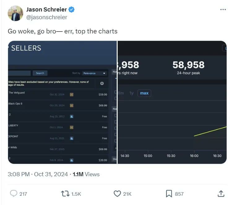 Журналист пытался перевернуть шутку о том, что прогрессивные игры с повесткой стабильно проваливаются в продажах.