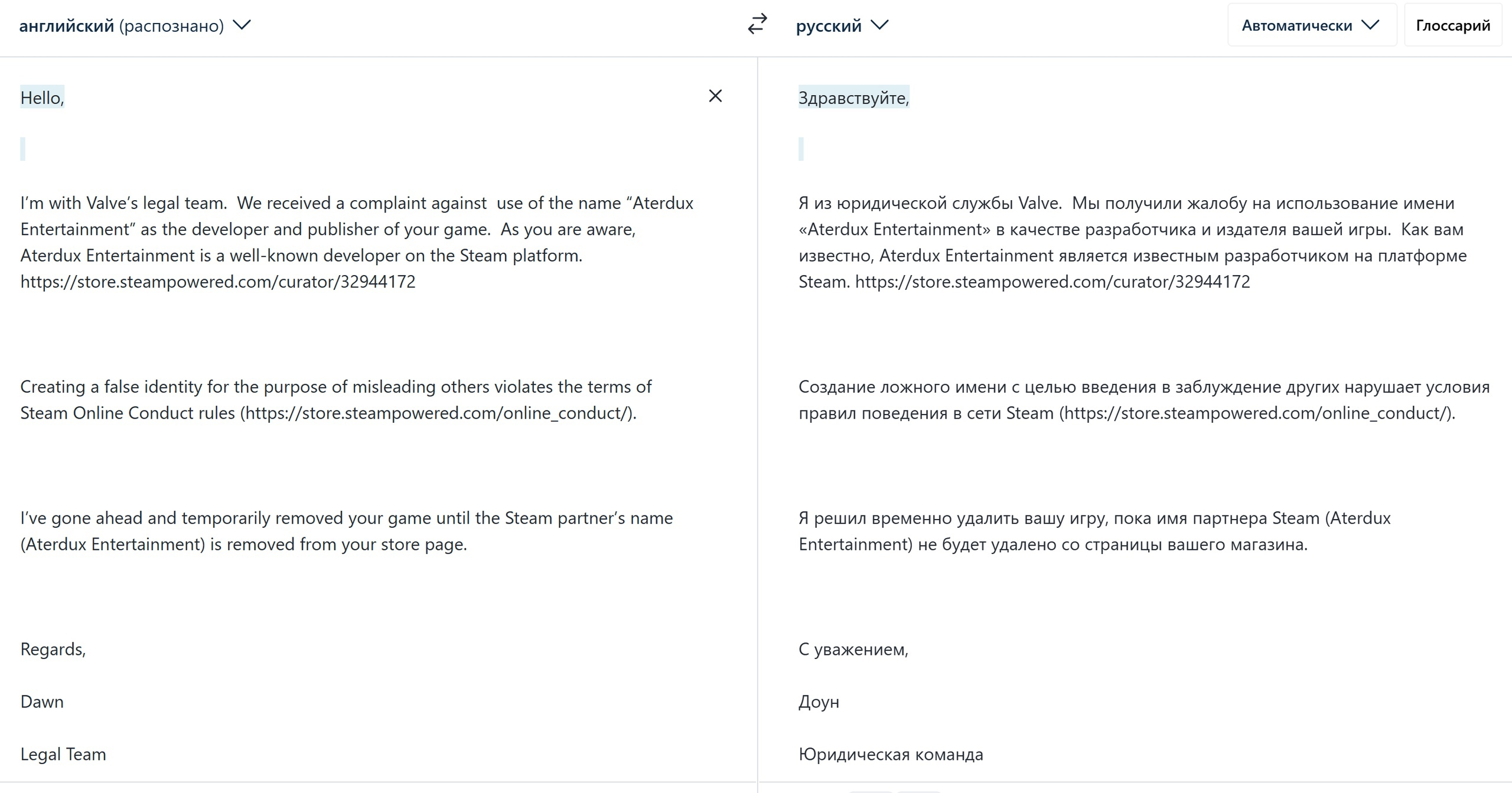 «...Игра будет по прежнему распространятся от имени Aterdux :)