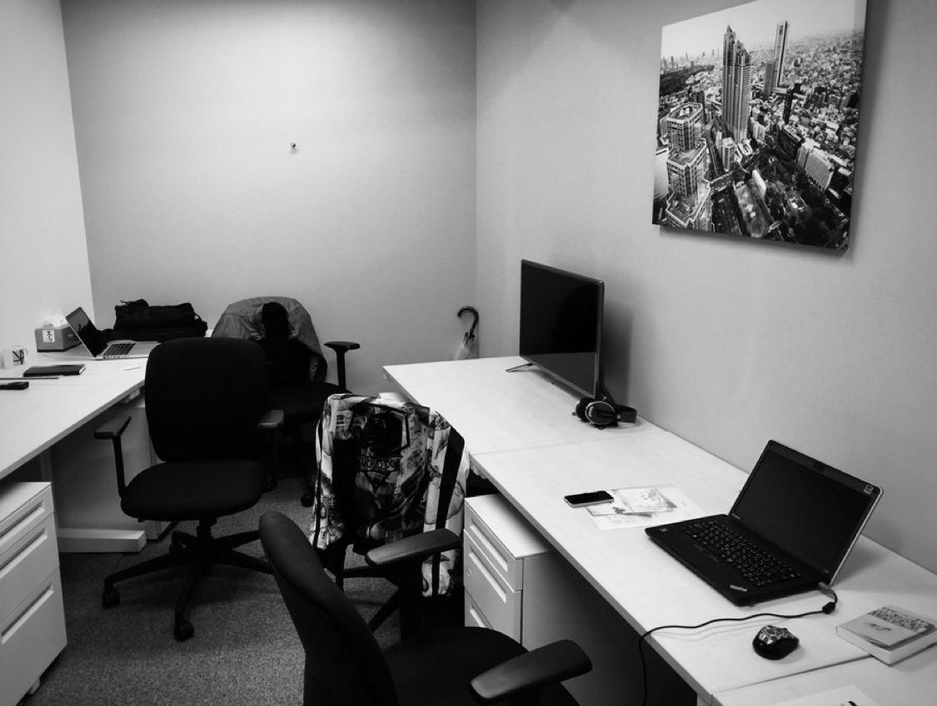 Планированием-работой здесь он занимался без коллег — место в помещении было ограничено: