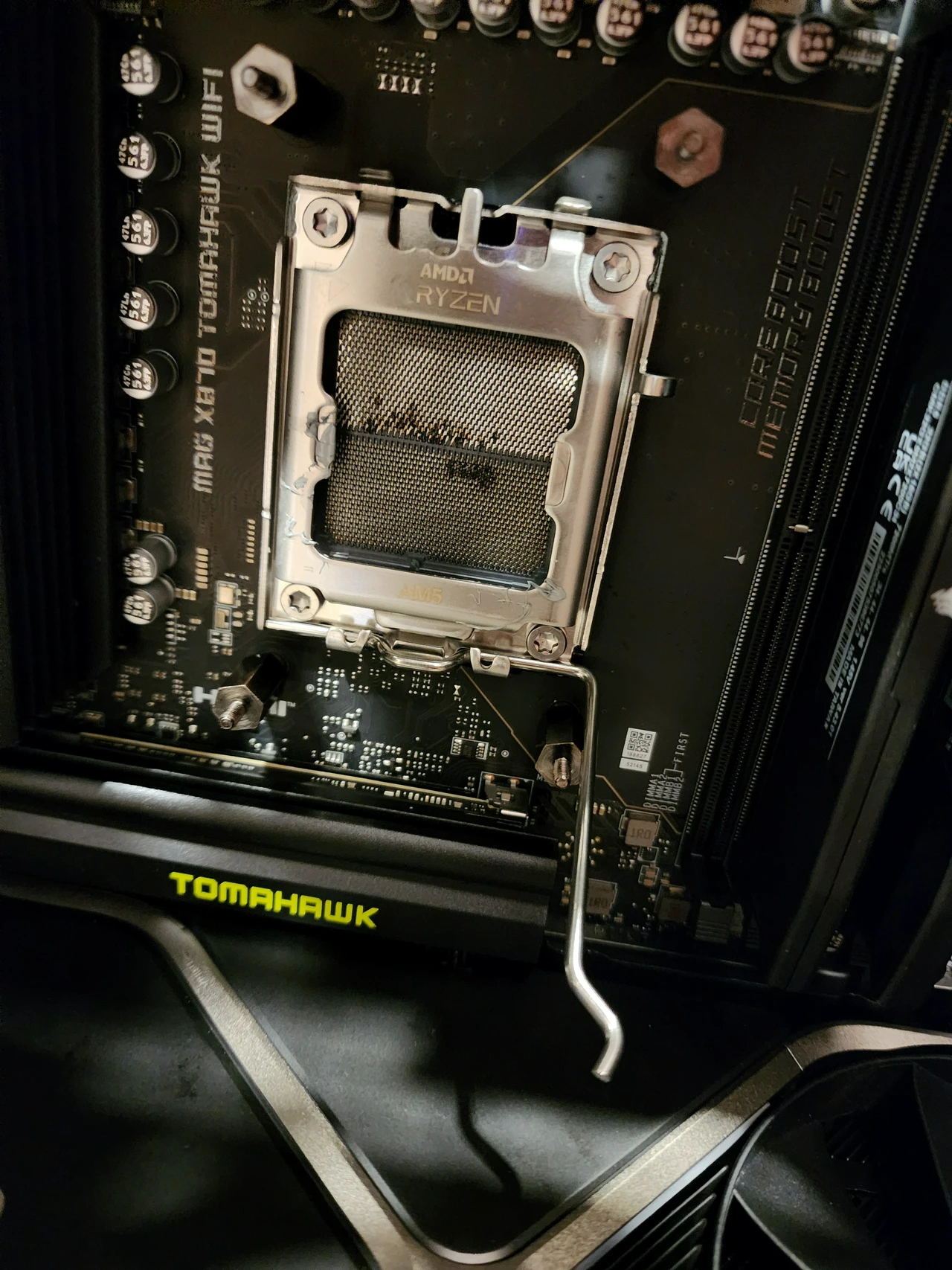 Как заявляется, новый процессор AMD Ryzen 7 9800X3D подгорел, также пострадала материнская плата MSI Tomahawk X870.
