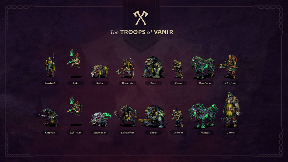 Всего для DLC Vanir было заявлено 8 новых существ с уникальными особенностями, при этом авторы отмечают, что улучшение существ «радикально меняет их внешность и характеристики».