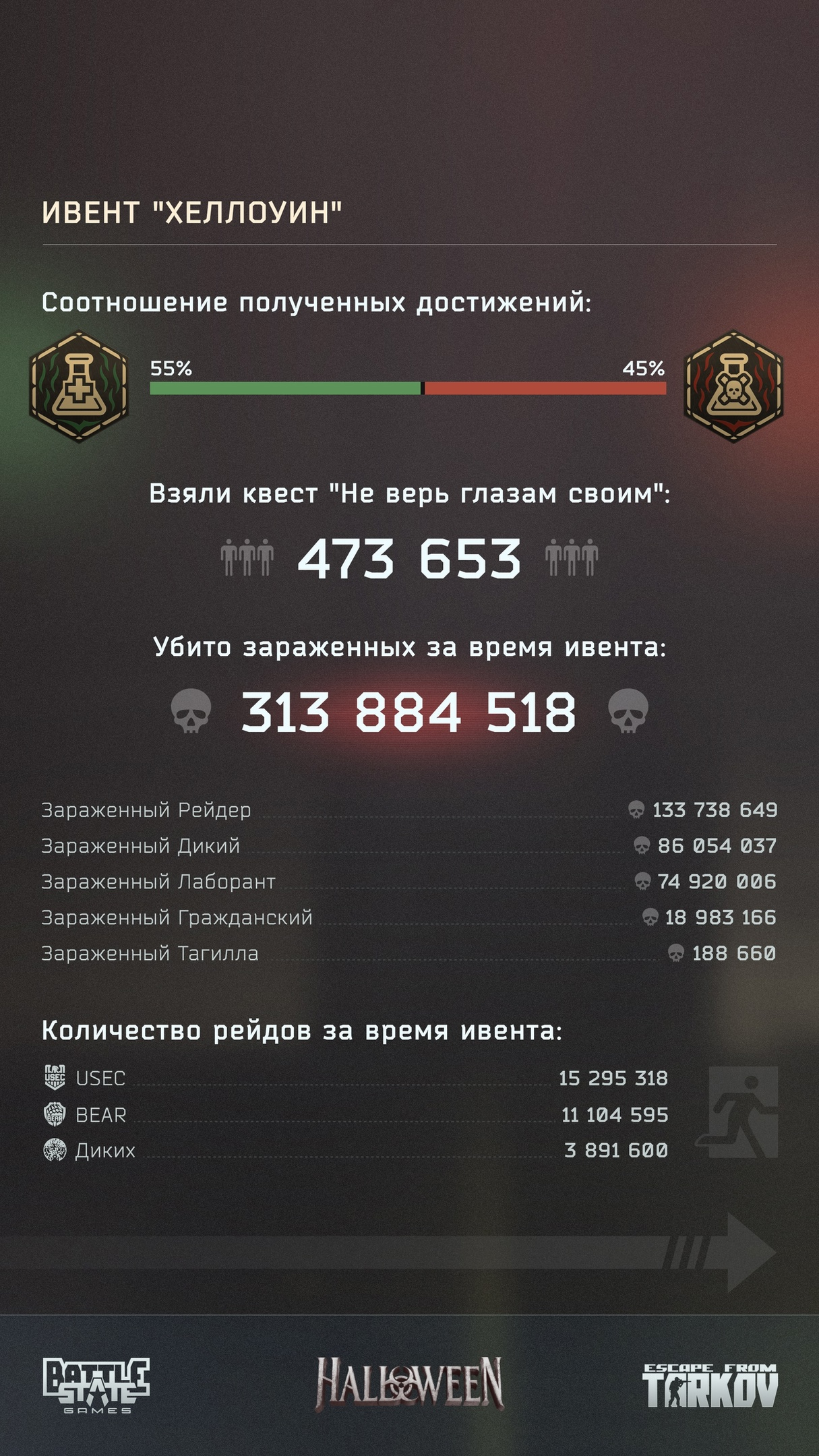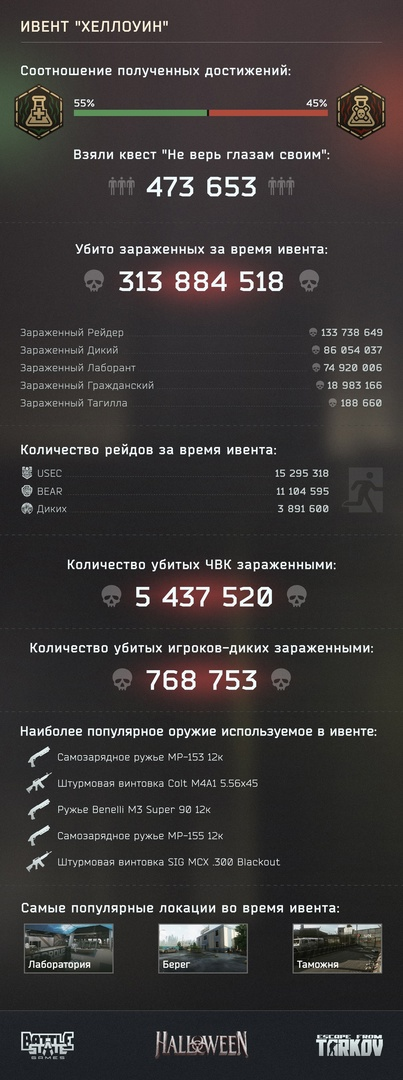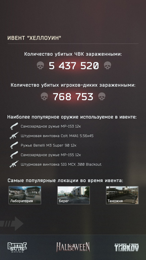 Недавно разработчики Escape from Tarkov устроили полноценный хэллоуинский ивент. Они изучили статистику игроков и решили подвести итоги.