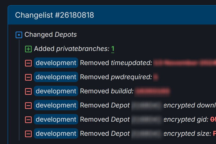 Однако недавно команда SteamDB сообщила о том, что «Steam начинает включать "частные ветки" (private branches) в "информации о приложениях" для некоторых игр, поэтому SteamDB больше не сможет отслеживать обновления для них».