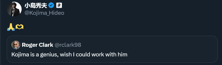 Роджер Кларк написал в социальной сети: «Кодзима — гений. Хотел бы с ним поработать».
