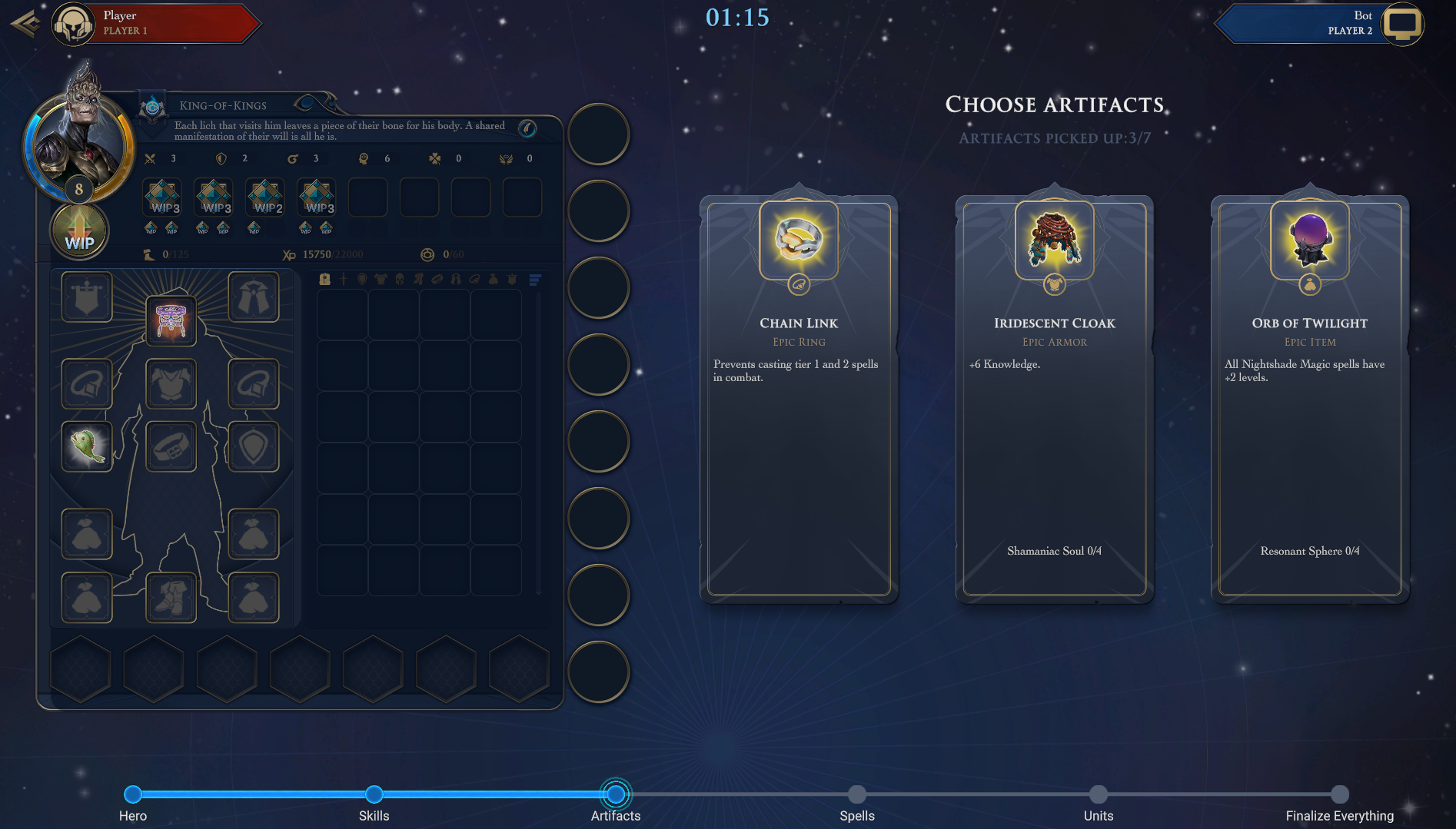 «Мы позаботились о том, чтобы драфт был честным: если вам выпал редкий артефакт, вашему противнику предложат не менее мощный, причем обоим игрокам предлагаются артефакты одинаковой степени редкости. Но хватать всё подряд не получится! Очень важно, как вы используете свои возможности, поэтому будьте внимательны к тому, какие сочетания у вас получаются