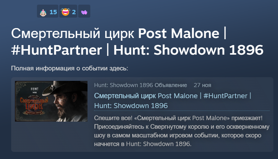 Недавно у сообщества Hunt Showdown 1896 появился ещё один повод для жарких споров. Разработчики представили новый ивент-коллаб с известной персоной — стримером-рэпером Post Malone.