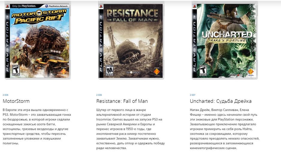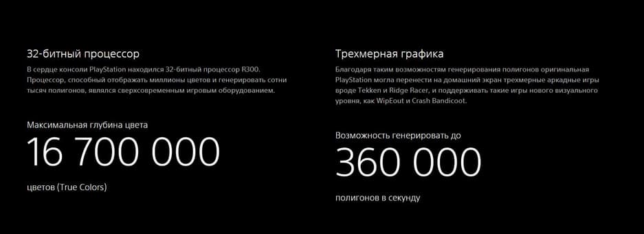 На странице представлена подробная история PlayStation, снимки, факты, технические характеристики устройств и самые популярные игры, выходившие на консолях Sony.