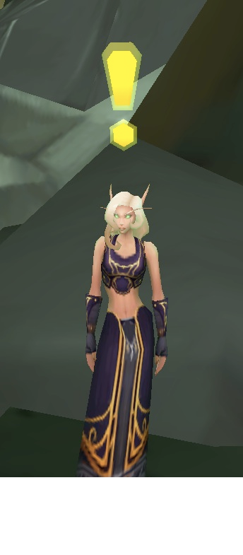 В мире World of Warcraft игрокам предлагают выполнять квесты, которые берутся у NPC. Для того, чтобы подать сигнал игроку о наличии квеста было решено использовать специальный символ — над головой у квестодателя возвышается восклицательный знак «!».