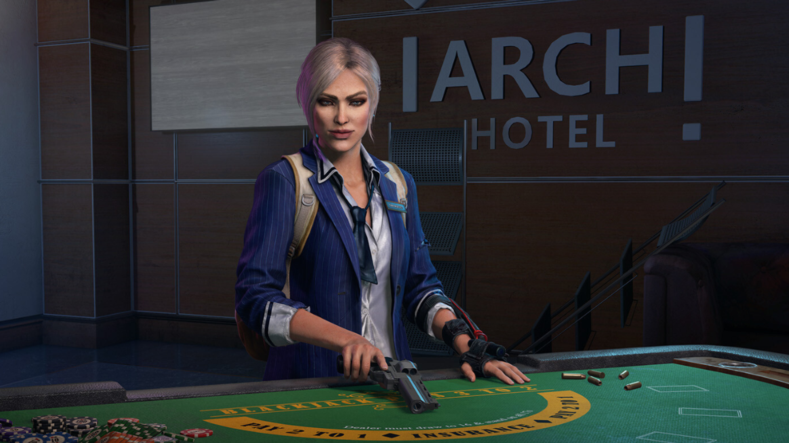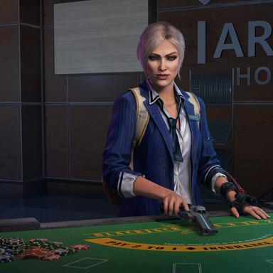 «Проникнитесь атмосферой "города грехов" вместе с особым набором Вегаса, в который входят роскошная экипировка для Сары Бенедикт и четыре ослепительные расцветки — по одной для каждого вида оружия»: