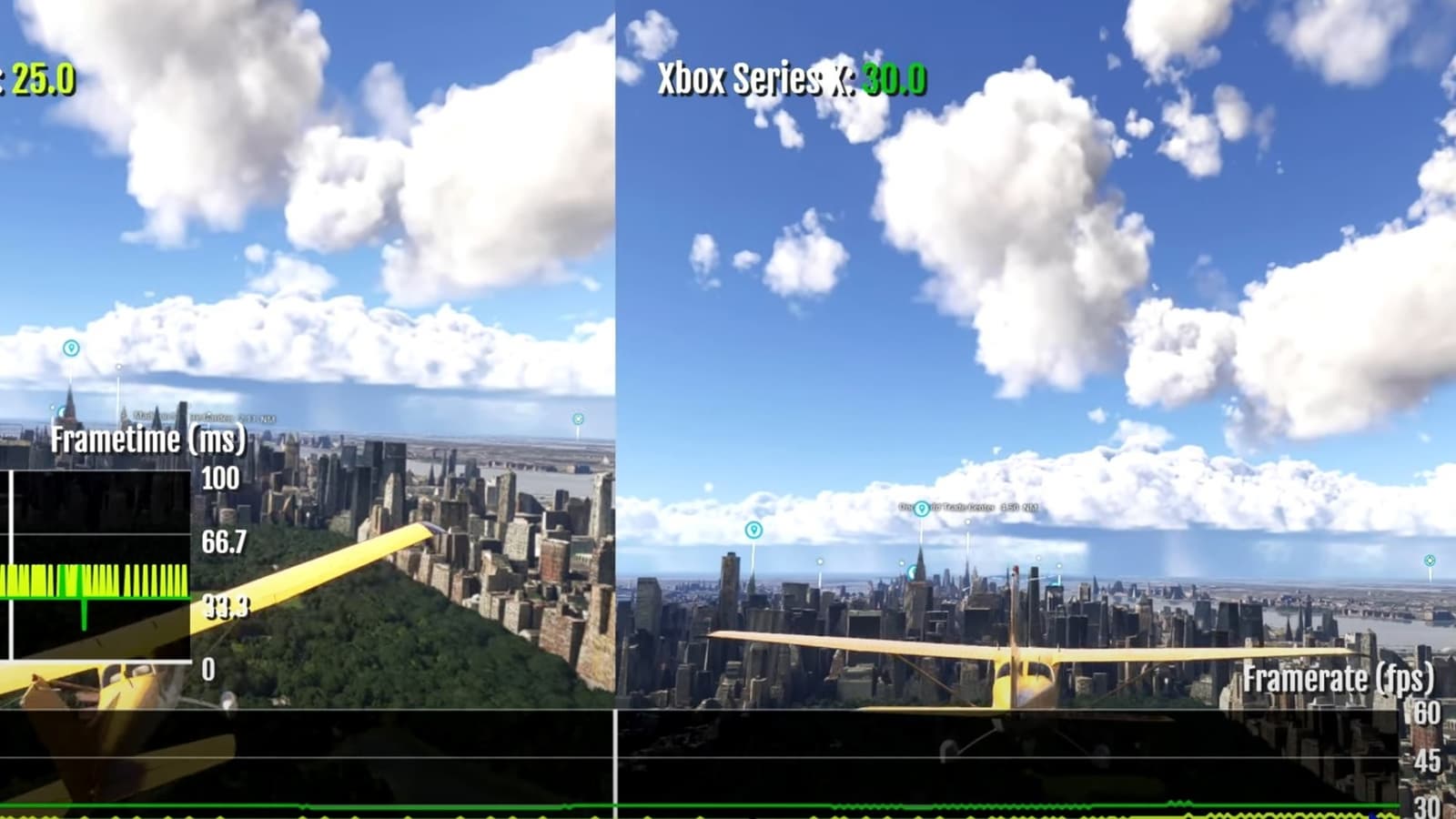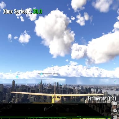В тестровании частоты кадров, который можно увидеть на 6:30 видео, Xbox Series S демонстрирует ужасные результаты, выдавая нестабильные 30 к/с при полёте на маленьком самолете Cessna 172, с падениями до 24 к/с. Стоит отметить, что при использовании более тяжелых самолетов нагрузка на устройство гораздо выше, поэтому в некоторых сценариях можно ожидать, что частота на XSS будет падать ещё ниже.