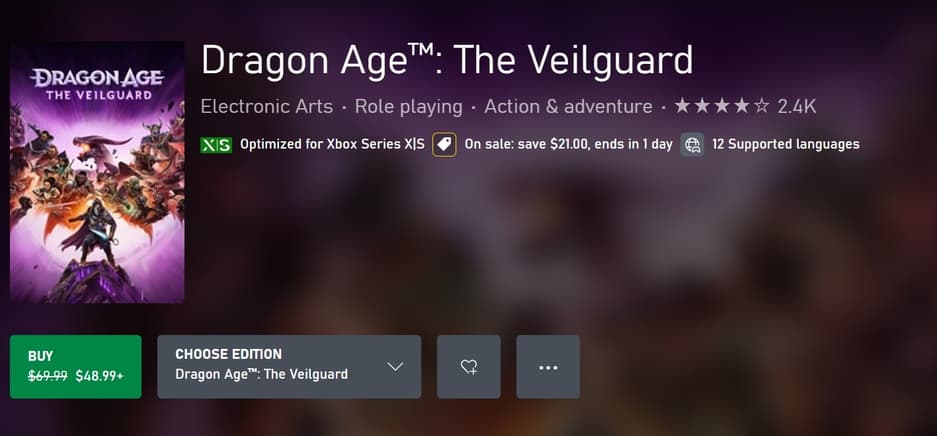 По многочисленным сообщениям, продажи Dragon Age: The Veilguard идут плохо. BioWare решила не раскрывать сведения о продажах.