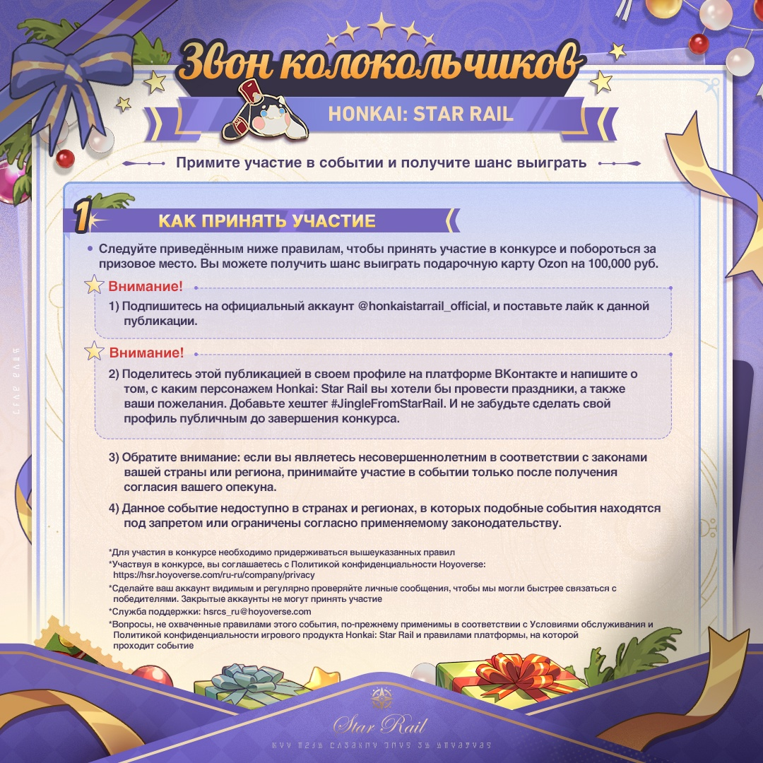 Для участия в онлайн-коллабе Honkai Star Rail x Visit Rovaniemi совершеннолетним пользователям надо будет подписаться на официальный аккаунт @honkaistarrail_official и поставить лайк конкурсной записи, а затем поделиться ей в своём профиле на платформе «ВКонтакте» и написать о том, с каким персонажем Honkai Star Rail хотелось бы провести праздники, и свои пожелания.