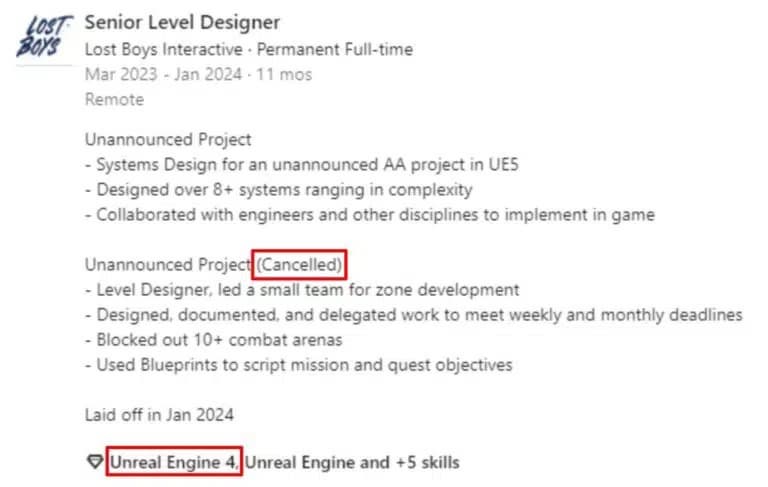 По информации, связанной со студией-соразработчиком первой части, Lost Boys Interactive, Tiny Tina’s Wonderlands 2 в 2024 году столкнулась с «мягким перезапуском». Изменения произошли на фоне увольнений в Lost Boys и продажи Gearbox группой Embracer компании Take-Two. Упоминания о проекте в профилях сотрудников, включая обозначение как «неанонсированной», могут указывать на отмену игры.