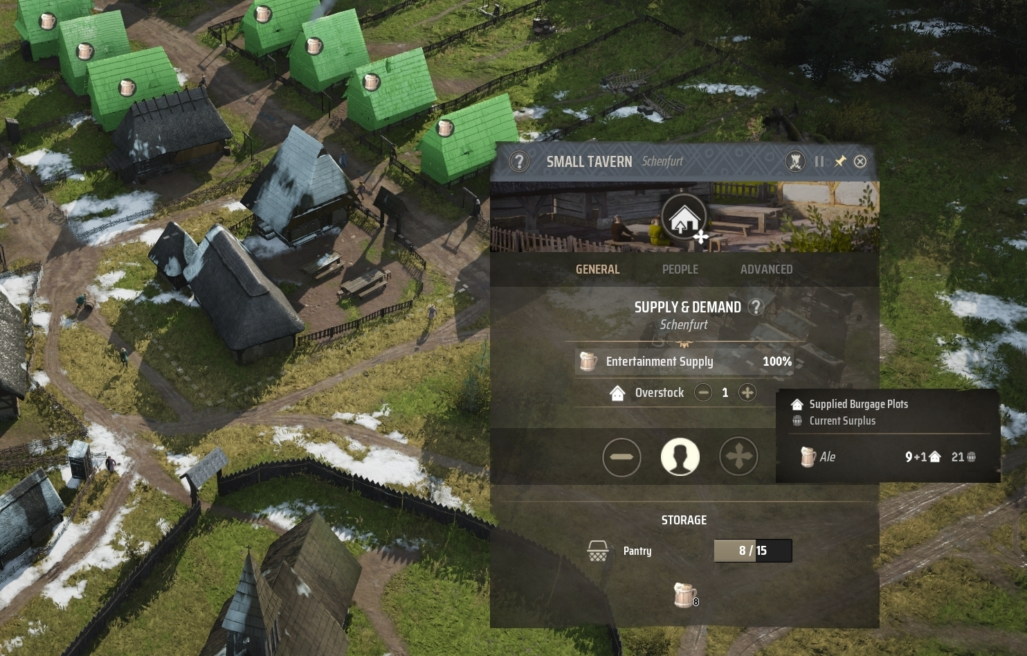 Для предприятий предусмотрели возможность создавать запасы, например таверна сможет закупить побольше эля, если «чувствуют», что ресурс скоро закончится: «Это изменение помогает минимизировать колебания в поставках ресурсов, вызванные логистикой, особенно в крупных городах, где управление цепочками поставок может стать сложной задачей».