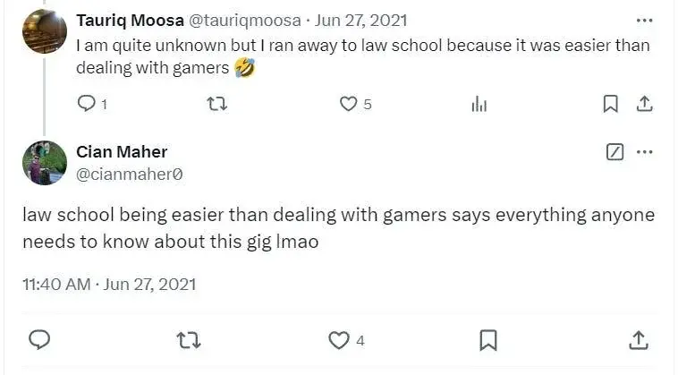 27 июня 2021 года Махер согласился с жалобой одного комментатора, что получать юридическое образование легче, чем иметь дело с геймерами.