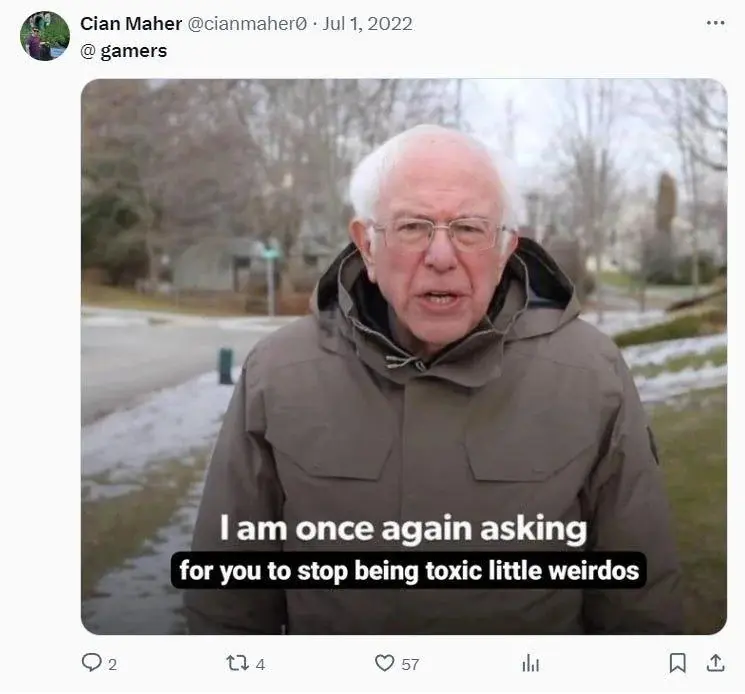 1 июля 2022 года Махер опубликовал мем с Берни Сандерсом, и попросил геймеров не быть «токсичными чудаками».