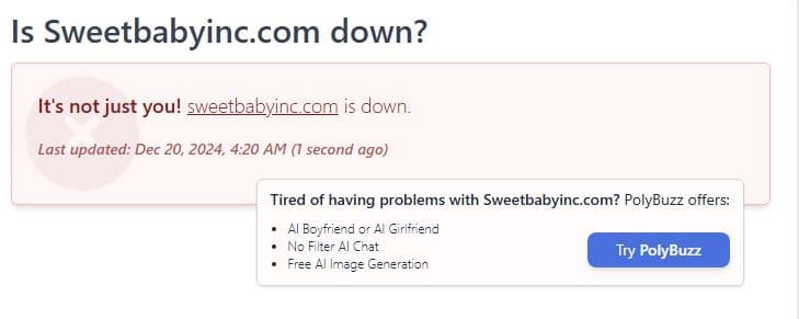 Официальный сайт конторы консультантов Sweet Baby недоступен уже несколько часов. Попытка пройти по ссылке sweetbabyinc.com приводит к ошибке «408 Request Time-out».