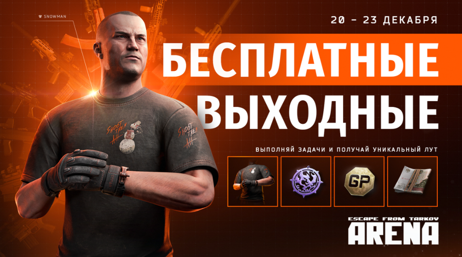 В период с 20 по 23 декабря (12:00 по московскому времени) можно бесплатно играть в Escape from Tarkov Arena. Параллельно запустили событие, в ходе которого можно будет получить награды: