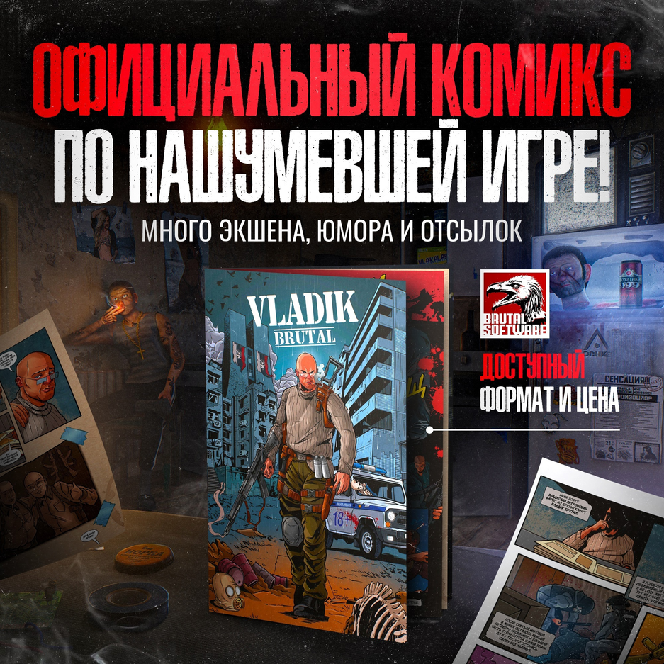 Недавно издательство Alpaca объявило о выпуске комикса по VLADiK BRUTAL. Открыли продажи в разных отечественных магазинах (обложки разнообразные).