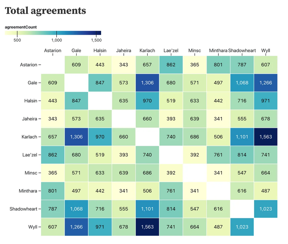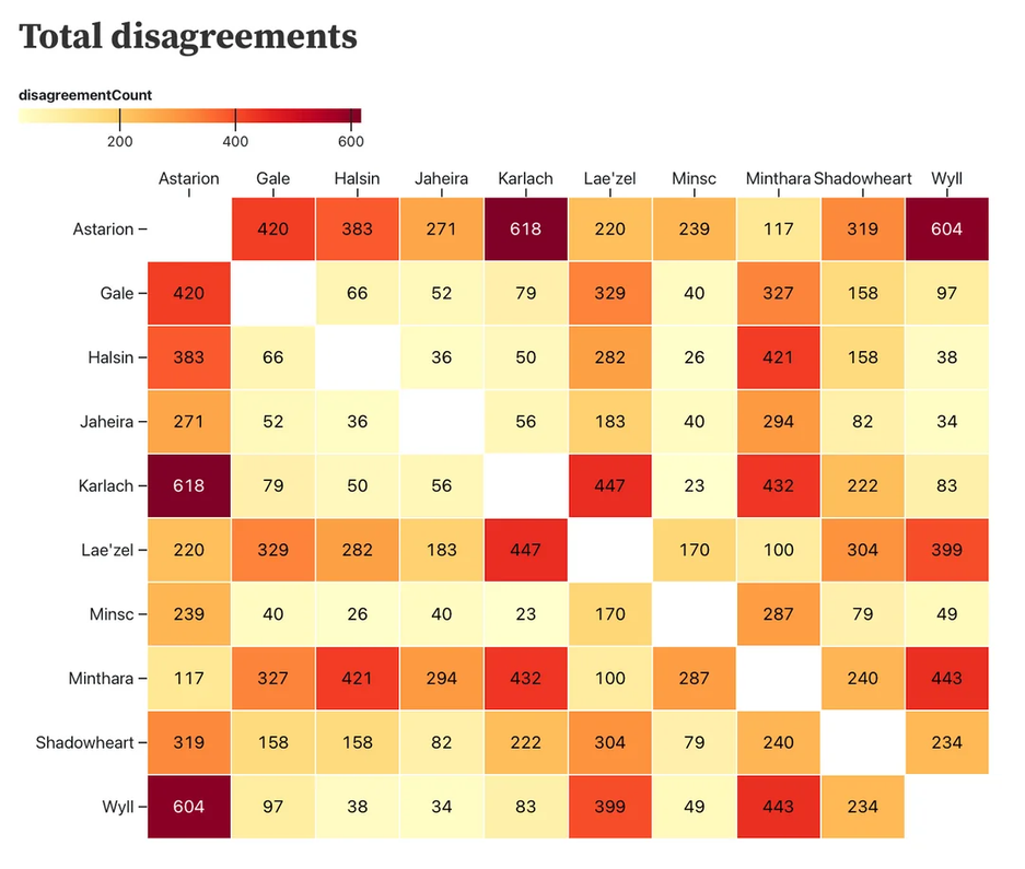 Объявился энтузиаст под ником Tarrasque-Named-John, который погрузился в диалоги Baldur's Gate 3 и количественно оценил, насколько герои согласны друг с другом и каков уровень их противоречий.