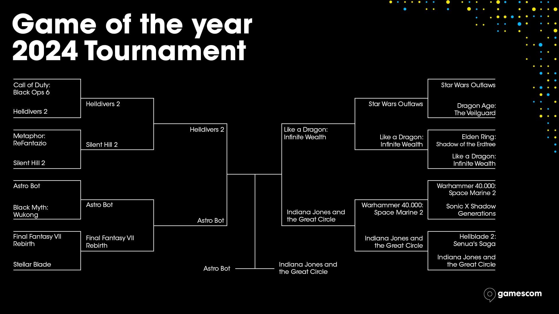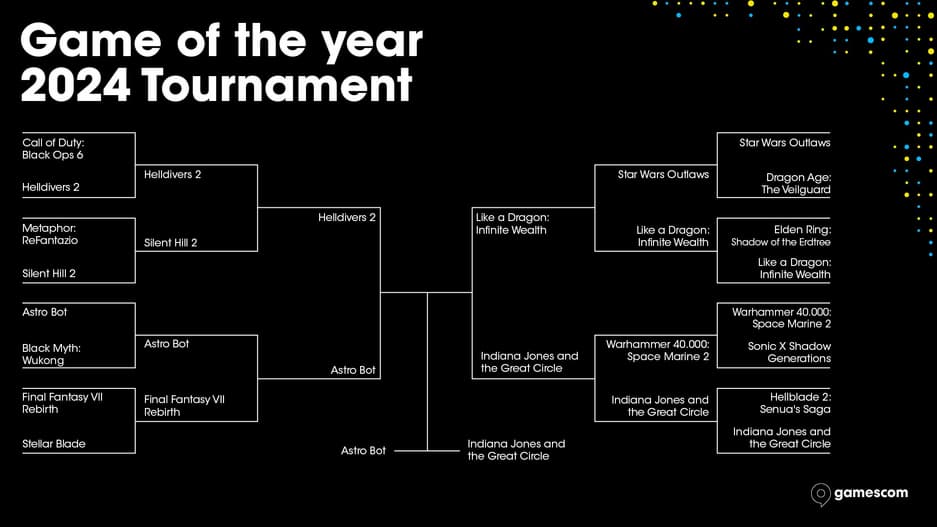 Турнир, состоящий из нескольких отборочных этапов по типу спортивных соревнований, стал победителем благодаря голосованию сообщества. Это важное признание для MachineGames, учитывая, что игра не смогла принять участие в The Game Awards 2024 из-за времени выхода (игры, выпущенные в декабре, номинируются на следующий год).