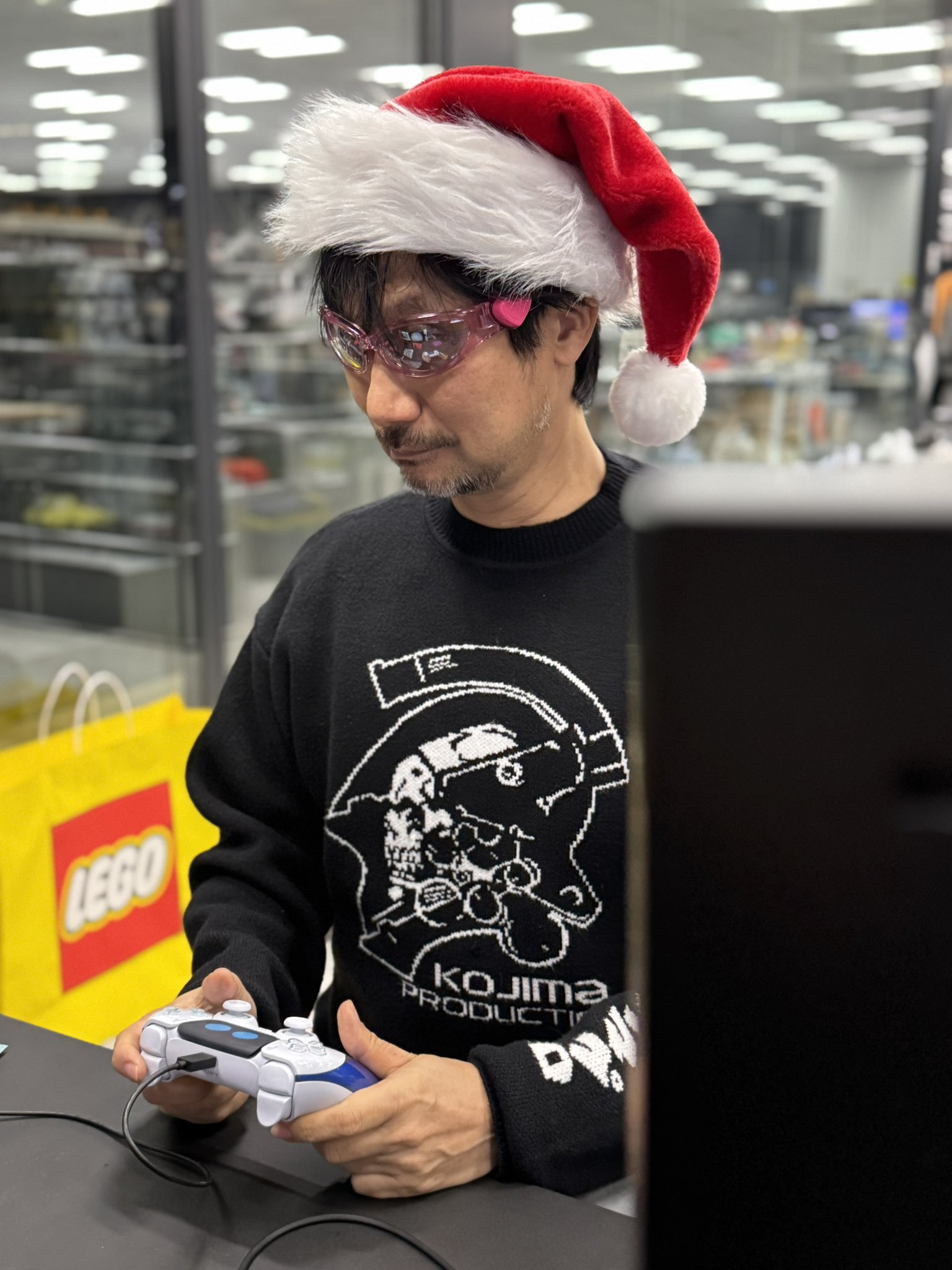 На опубликованных фото не трудно заметить пакет LEGO, а также несколько наборов. На других фото Хидео Кодзима предстал в новогодней шапочке.