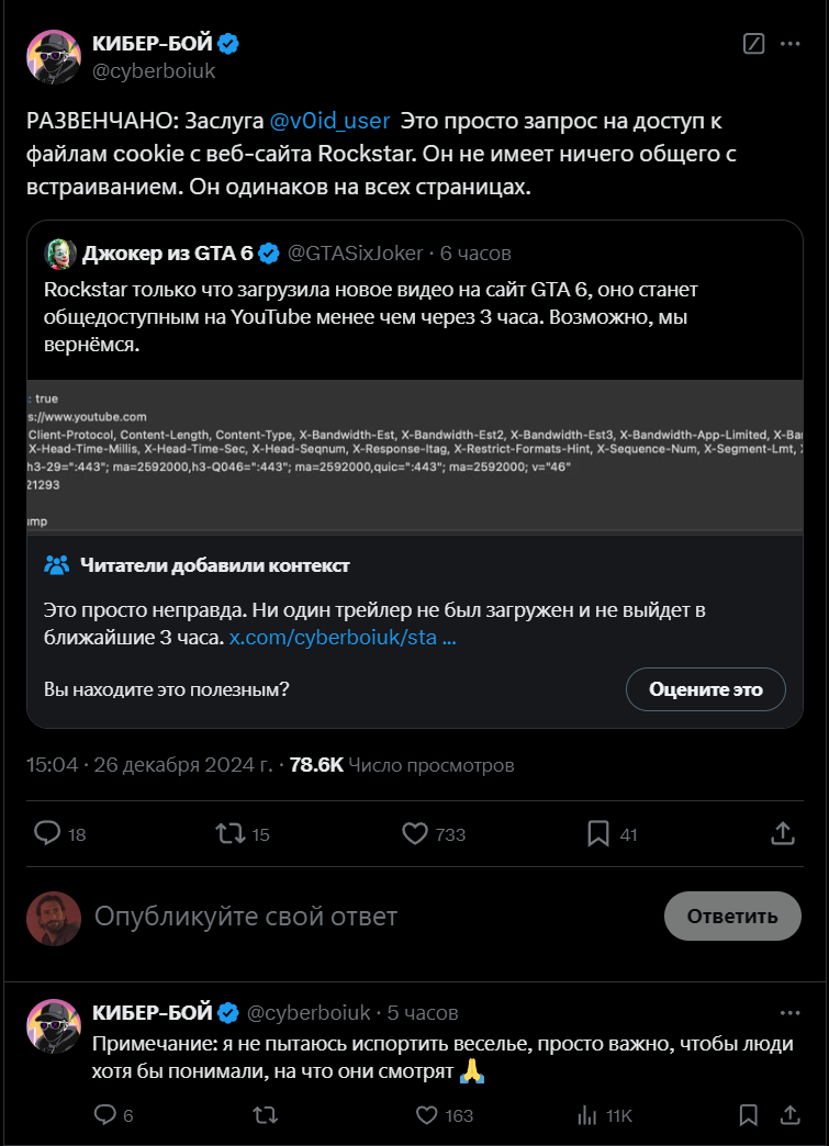 К сожалению, скриншоты, которые были опубликованы в социальной сети X, ввели пользователей в заблуждение. Один из читателей источника сделал об этом отдельный пост (вы можете увидеть его на скриншоте):