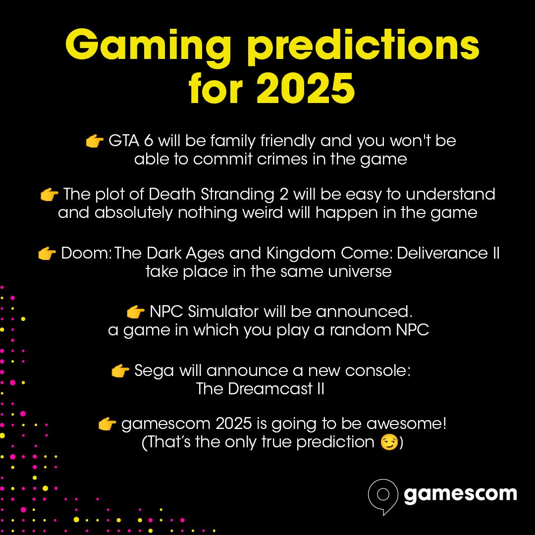 Завершается 2024 и скоро наступи 2025 год. Организаторы gamescom решили встретить его с шуточным списком прогнозов — в нём нашлось место некоторым ожидаемым релизам.