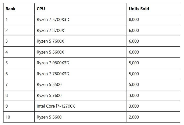 В декабре 2024 года AMD вновь продемонстрировала мощь на рынке процессоров, обогнав Intel по количеству проданных единиц на платформе Amazon в США. По последним данным продаж, AMD превзошла конкурента на 43 800 единиц, благодаря популярности процессора Ryzen 5700X3D.
