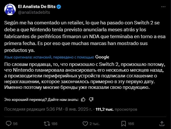 Оказывается, планы по анонсу Switch 2 существовали ещё несколько месяцев назад, но Nintendo задержала презентацию. До этого времени компании, производящие аксессуары, были связаны соглашениями о неразглашении. Но срок NDA истёк, что дало производителям свободу демонстрировать свои продукты, связанные с новой консолью.
