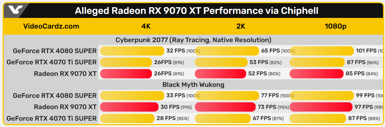 В сеть продолжает поступать «инсайдерская» информация о возможностях некоторых видеокарт. Chiphell поделился результатами тестирования Radeon RX 9070 в паре известных видеоигр в разрешении 1080p, 2K, 4K.