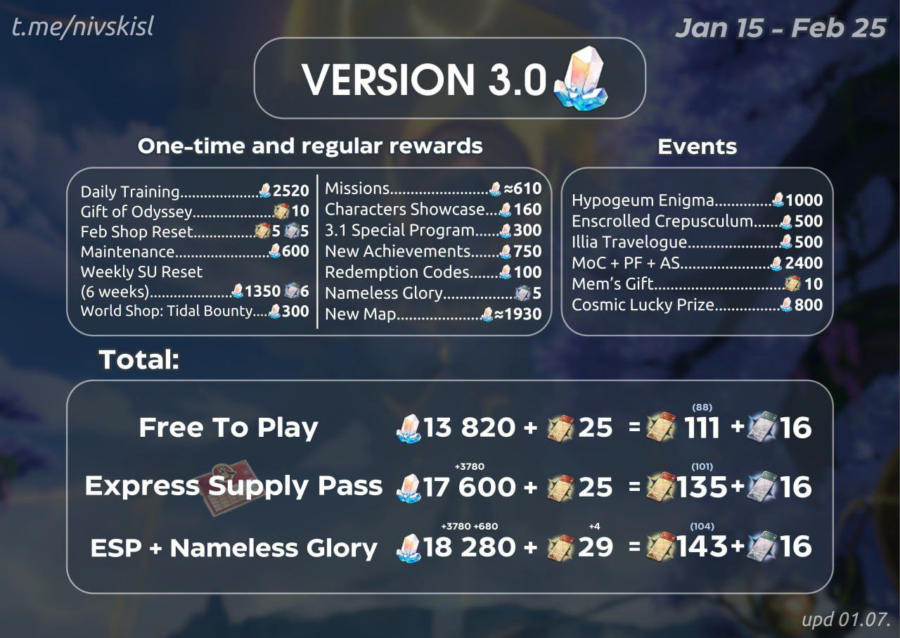 Поклонники Honkai Star Rail готовится осваивать контент 3.0 и различные энтузиасты пытаются оценить потенциальные награды. В сообществе «HoYoverse | Honkai: Star Rail» обратили внимание на вычисления nivskisl — результаты были оформлены в формате таблицы.