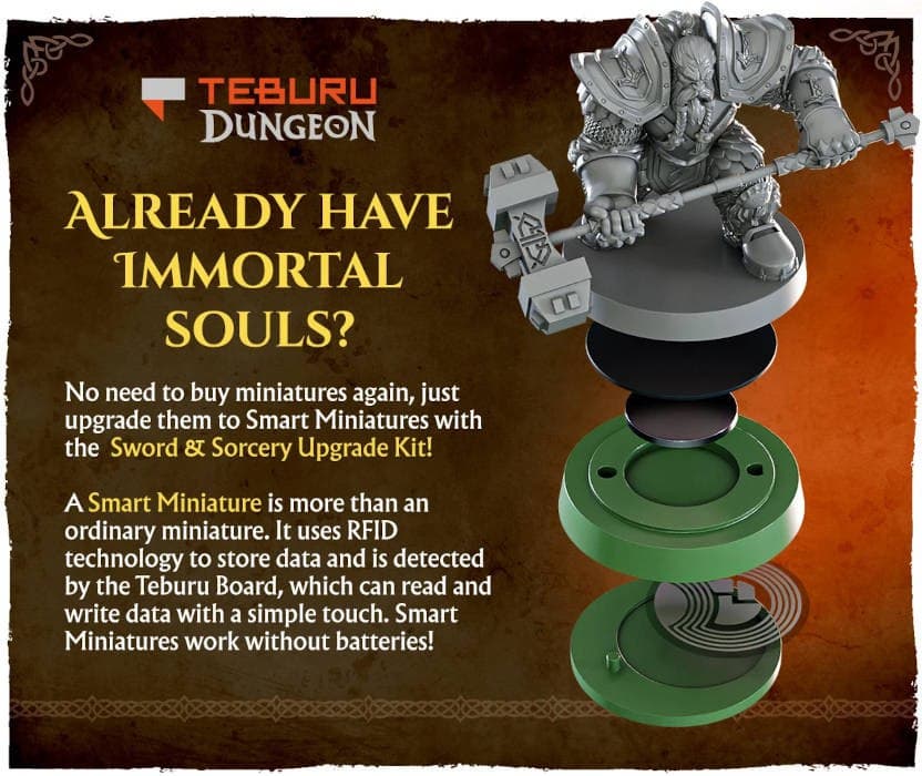 Teburu-версия игры получит совершенно новую сюжетную кампанию. Плюс людям, уже успевшим приобрести настолку «Клинок и Колдовство: Бессмертные Души», не придется заново покупать фигурки, так как их разрешат обновить до умных миниатюр с помощью специального инструмента.