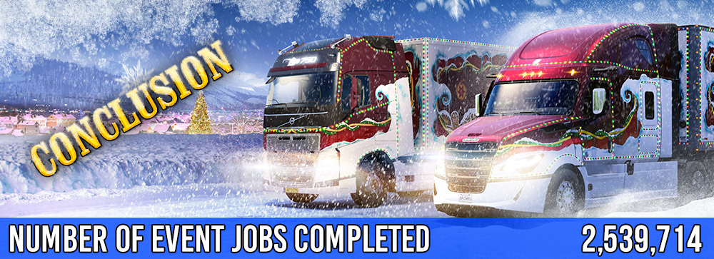 Всего за время зимнего ивента виртуальные водители в ETS 2 и ATS проехали порядка 251 294 135 километров, перевозя рождественские грузы.