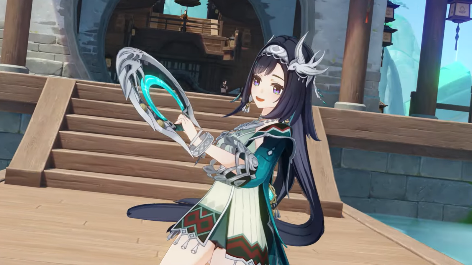 Это героиня с 4 звездами редкости, её элемент Анемо и в бою она использует Катализатор. Девушка способна призывать щит, который при определённых условиях может менять элемент.