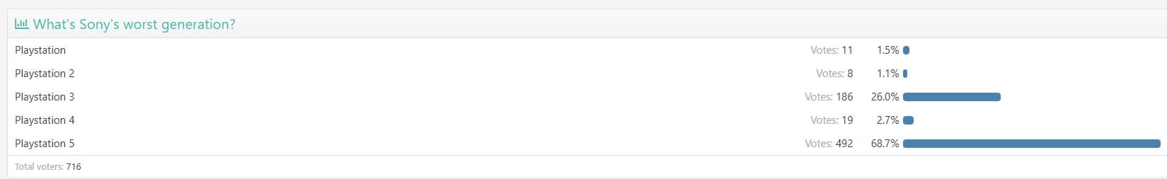 Результаты удивляют: 69% участников признали PS5 самой разочаровывающей консолью Sony, оставив позади даже противоречивую эпоху PS3, получившую 26% голосов.