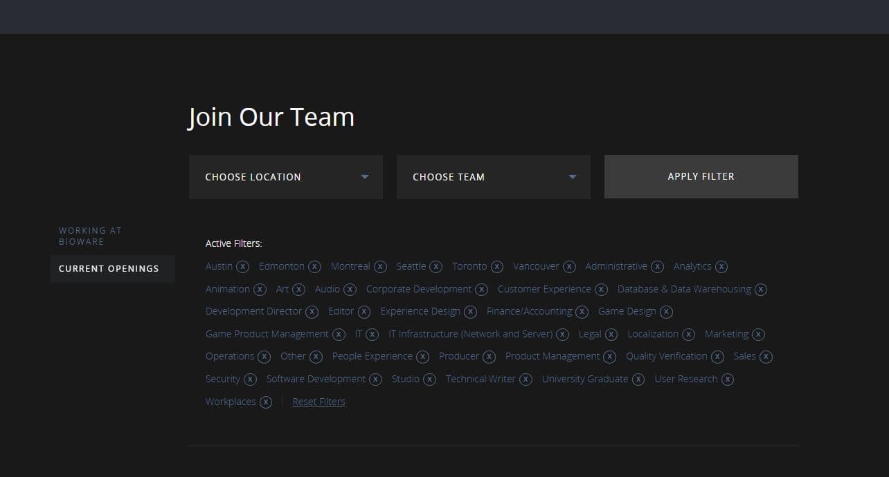 BioWare прекратила набор новых сотрудников. В офисах студии больше не открыты вакансии в любых подразделениях — от менеджеров до службы безопасности.