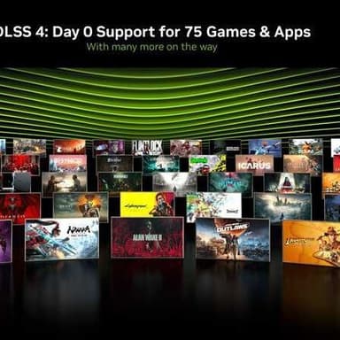 На старте будет доступна поддержка DLSS 4 в 75 играх. Все проекты пользуются преимуществами ИИ-технологий Nvidia, улучшая графику и производительность без существенного увеличения нагрузки на систему.