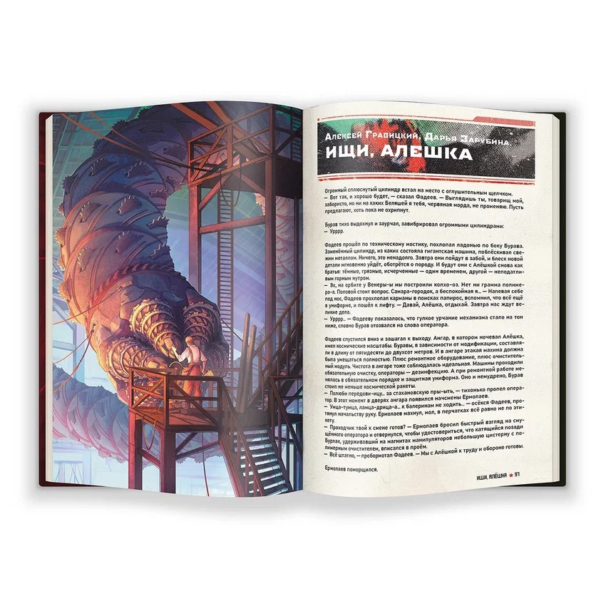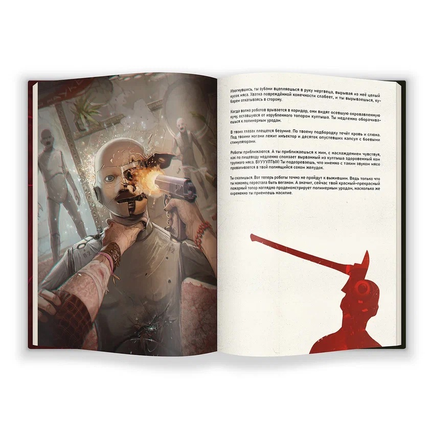 «Здесь же вас ждут 256 страниц увлекательных рассказов, качественных иллюстраций, справочных материалов о робототехнике Предприятия 3826 и агитационных плакатов. А также секретный раздел, который станет заслуженной наградой для всех читателей И еще вагон отсылок и пасхалок, которые заметят самые внимательные читатели. В составе сборника очень разные истории. Нашлось место и социальной драме, и нуарному детективу, и даже юмористическому боевику. А последний сюжет вообще связывает воедино все рассказы с отсылкой на завязку игры. Эта книга — важная часть коллекции каждого фаната игры!»