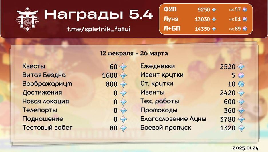 - С луной + БП: 14 350 примогемов (89 круток).