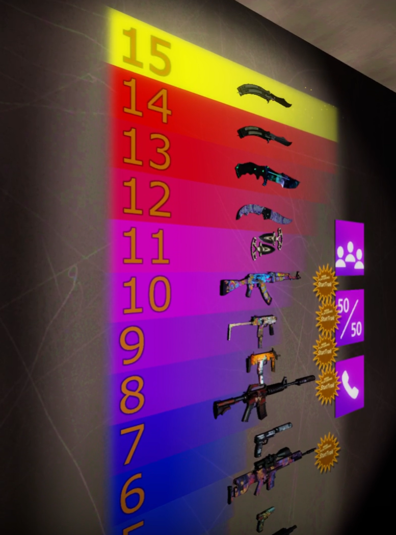 Эти вопросы охватывали разные части франшизы Counter-Strike и их особенности, например спрашивали: «какая самая популярная карта для Counter-Strike?», «какой самый высокий ранг вы можете получить в соревновательном режиме» и т.п.