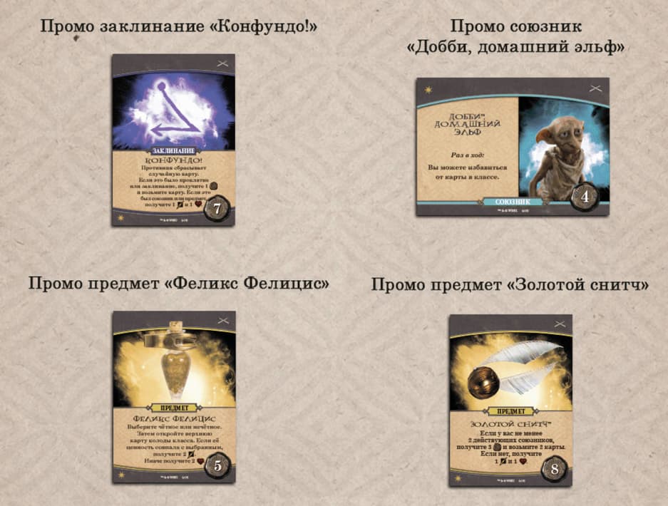 Права на персонажей принадлежат Warner Bros. Entertainment Inc. и Дж.К. Роулинг. Права на изображения принадлежат The Op Games и Lavka Games («Лавка Игр»). Источники: Lavka Games, boardgamegeek.